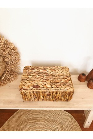 MNZ-Wicker Water Hyacinth 32x21x14cm منظمة مستطيلة/سلة/منظمة مع غطاء