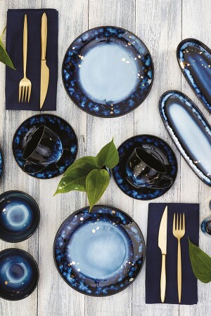 Çiğdem Blue Model 12 Kişilik 21 Parça Kahvaltı Takımı Kahvaltı Seti[ Mavi 12]