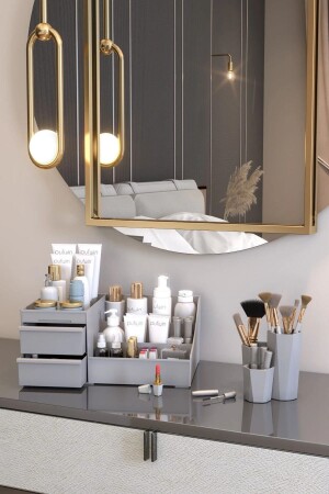 MNZ-Xl مكياج منظمة تجميل ومحفظة الفرشاة منظمة مجموعة من 2 رمادية منظمة مجموعة من 2 رمادية