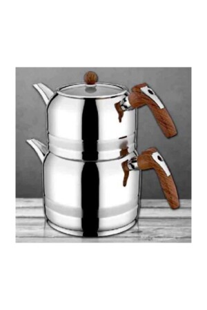 MNZ-Kahramanlar Yağmur مجموعة من الشاي الفولاذي الكبيرة الحجم مع اليد الخشبية، وعاء الشاي العلوي: 1.80 لتر وعاء السفلي: