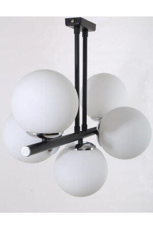 MNZ-Yelken 5-piece Black Chrome Plated White Glass Chandelier 20220230003