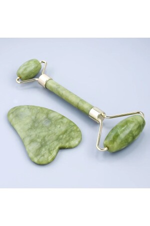 Yeşim Face Roller ve Kalp Gua Sha Yüz Masaj Aleti Seti Premium Doğal Taş Sertifikalı