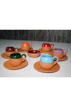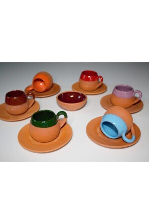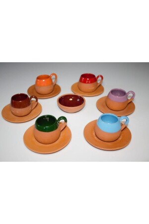 MNZ-Yörem Çömlekçilik Toprak Tombul 6 قطع كوب قهوة مع مجموعة تركية تحف 125T-TT1