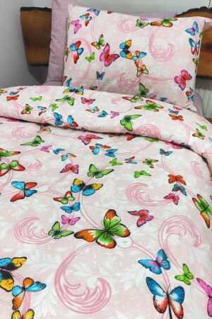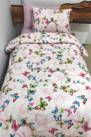 MNZ-Young Butterfly Pink 4-piece Duvet Cover Set مع ورق مرنة لشخص واحد (100X200 CM)