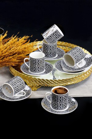 Sunum Tabaklı- Kahve Yanı Bardaklı 18 Parça 6 Kişilik Kahve Fincan Takımı- Seti