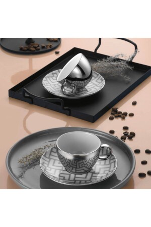 Sunum Tabaklı- Kahve Yanı Bardaklı 18 Parça 6 Kişilik Kahve Fincan Takımı- Seti