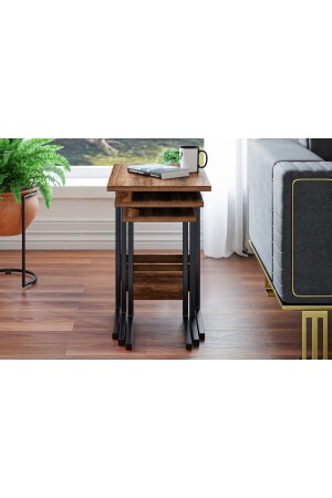 MNZ-Zg3 3 مقاعد طاولة قهوة مستقرة، طاولة قهوة معدنية - Oak ZG1-3653S
