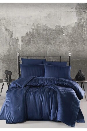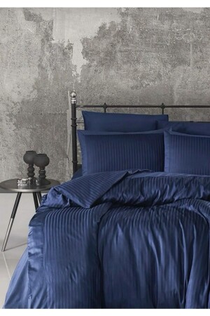 مجموعة ملابس الساتين المقطوعة بالأزرق المظلم (مجموعة واحدة) تتكون من 4 قطع: ملابس الساتين المقطوعة 200x220 سم (2 قطع) ، مل