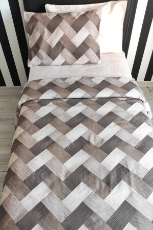 MNZ-Zigzag Brown 4 Piece Duvet Cover Set مع ورق مرنة لشخص واحد (100X200 CM)