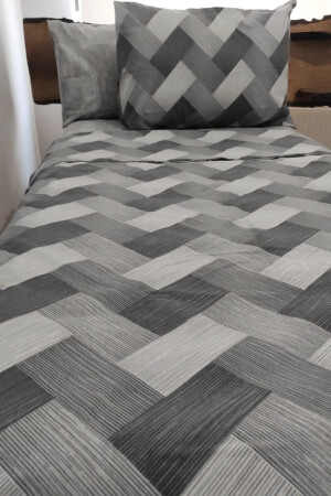 مجموعة ملابس منزلية من النسيج زيغزاج جراي 4 قطعة غطاء غطاء مع ورق مرنة لشخص واحد (100x200 سم) إجمالي 4 قطعة 57 خيط غ