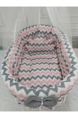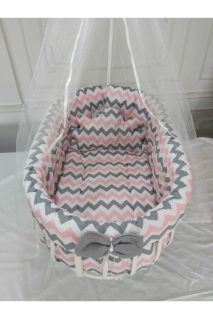 MNZ-Zigzag Pink Gray Basket Crib Sleeping Set (لا يشتمل على المرافق) 19780203709