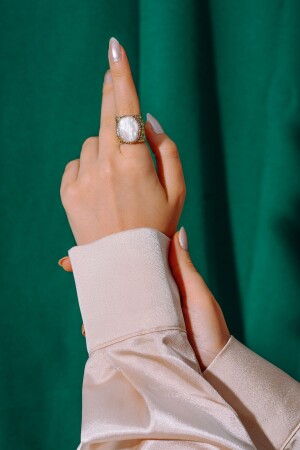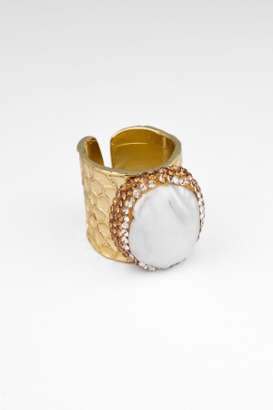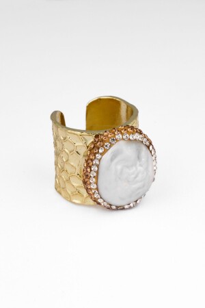 طراز MNZ-Baroque حلقة اللؤلؤة زيركون الحجر مزين بالذهب مزينة طلاء التصميم الحلقة المنتج مصنوعة يدوياً. 316L الصلب