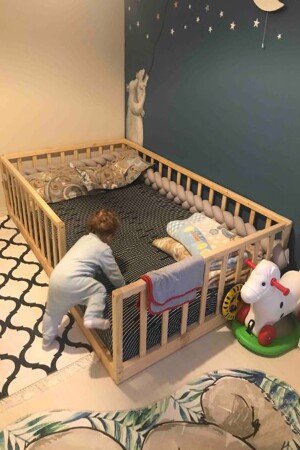 Eigenschaften des Bettgestells: Es besteht zu 100 % aus erstklassigem, natürlichem Kiefernholz und ist für die Gesundheit von Babys, Kindern und schwangeren Frauen geeignet. Unser Montessori-Bett enthält keinerlei gesundheitsschädliche chemische Stoffe. Es ist sehr leicht zu reinigen.