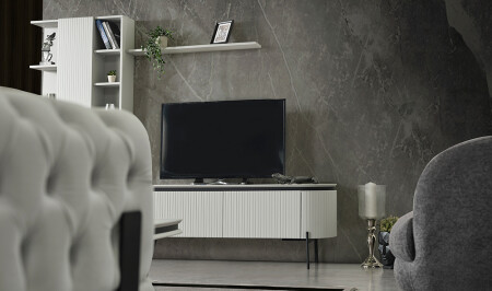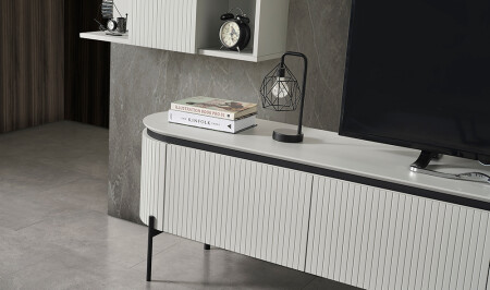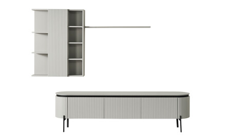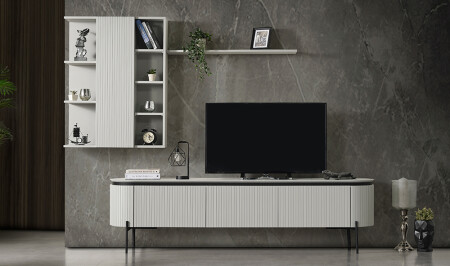- Alt çekmeceli ve üst dolaplı, üst raflı tv ünitesi