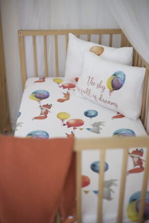 (MZ-Organic MUSLIN PIXEL AND Cotton Satin) - غطاء طفل (Duvet) - ذو موضوع الفوكس والبالون (ANP)