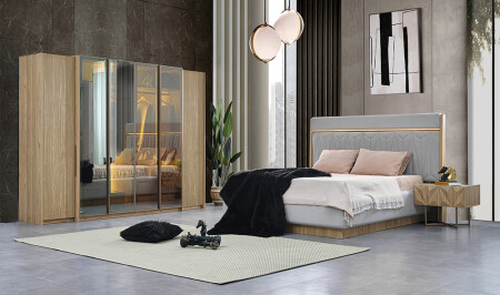 6 kapılı gardolap - bazalı karyola ve başlık 160 cm - şifonyer ve ayna - 2 adet komodin takım fiyatına dahildir