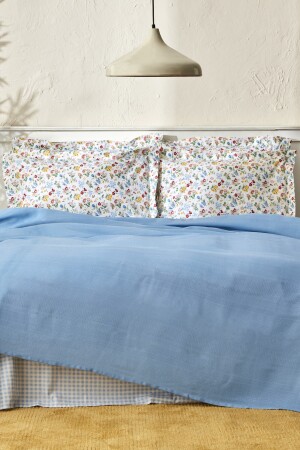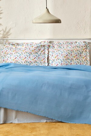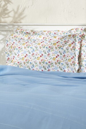 Karaca Home Noya %100 Pamuk Çift Kişilik Pike Takımı Mavi Pike / Pique : 200x220 cm Yatak Çarşafı / Bed Sheet : 240x260 cm Volanlı Yastık Kılıfı / Pillow Sham : 50x70 cm ( 2 Adet/ 2 Pcs.) %100 PAMUK