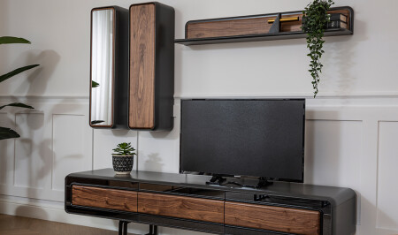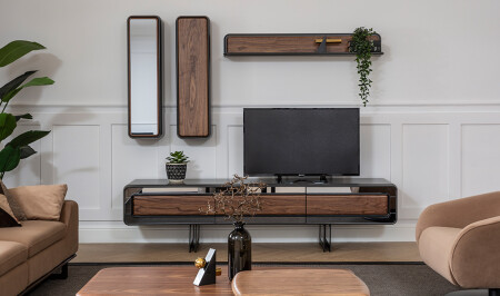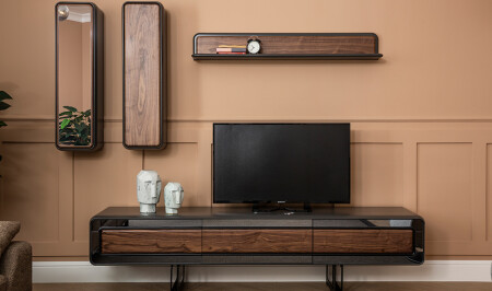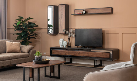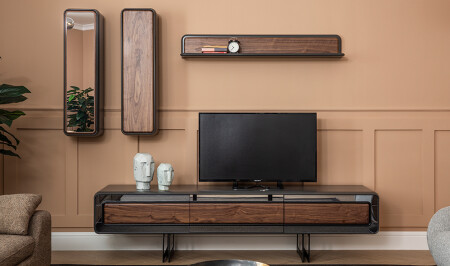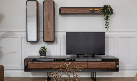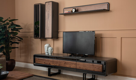- Çekmeceli, 2 adet üst dolaplı ve 1 adet üst raflı tv ünitesi