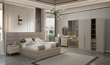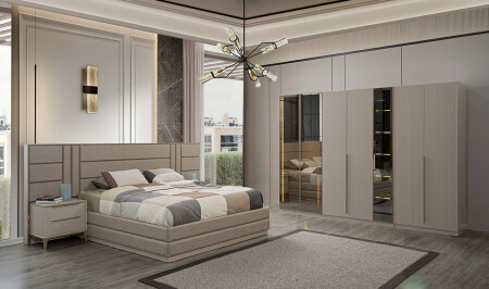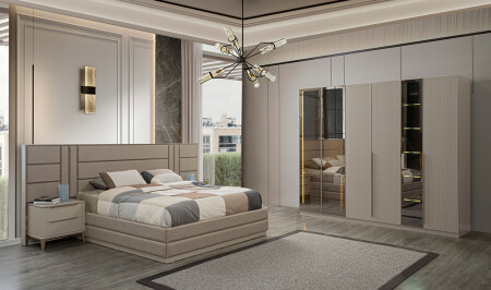 6 Kapılı gardolap - bazalı karyola ve başlık - şifonyer ve ayna - 2 adet komodin takım fiyatına dahildir