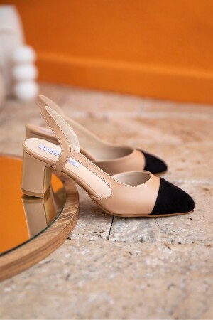 Damenschuhe in Blush Beige mit nackter Haut und mattem Leder mit spitzer Zehenpartie und kurzem Blockabsatz