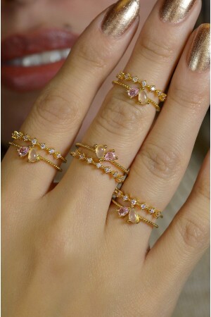 MNZ-Pink Heart Thin Ring حلقة صغيرة من الحجر قابلة للتعديل