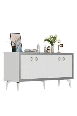 PONNY-KONSOLE MIT 4 TÜREN UND REGALEN WEISS-SILBER KNS8048
