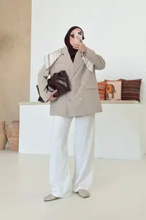 Premium Oversize Blazer Ceket Bej