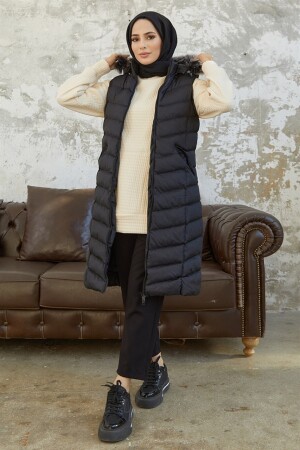 Kadın Uzun Şişme Yelek Siyah 2023alkc44