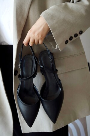 „FABRİ“ schwarze Haut – offene Schuhe mit 5 cm dickem Absatz und breitem, rundem Zehenbereich, hinten geschnallt, neue Saison