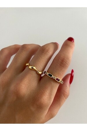 خاتم نسائية من الذهب من MNZ مع حجر الباجيت الملون