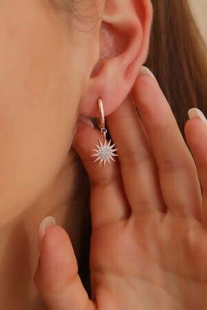 Ohrringe mit rosévergoldetem Zirkon und weißem Stein und Sonnenmodell
