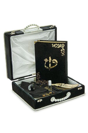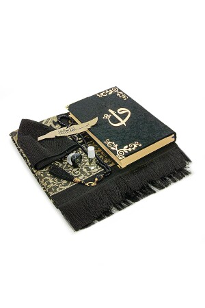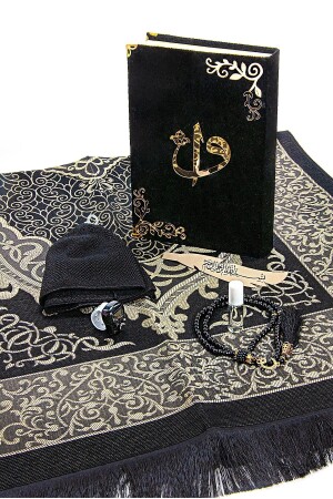 Set İçeriği 1 Adet Damat Konseptli Kadife Çeyiz Sandığı (31 x 10.5 x 27 cm) 1 Adet Lüks Şönil Siyah Seccade (116 x 68 cm) 1 Adet Kadife Kaplı Orta Boy Kuranı Kerim (17 x 24 cm) 1 Adet Zikirmatik 1 Adet İnci Görünümlü 99'lu Tesbih 1 Adet Namaz Takkesi 1 Adet Pleksi Kitap Ayracı Set ağırlığı 2.5 kg'dır. Bu seccade seti- damat çeyiz bohçasına uygun olarak tasarlanmıştır. Geleneksel çeyiz hazırlıklarınızda bohça içeriğine şıklık katmak ve çeyizinizdeki diğer parçalarla uyumlu bir seçenek eklemek isterseniz- bu set tam size göre.