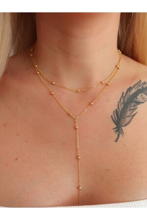 Gold renk sarkıntılı kolye tek zincirdir birbirine bağlıdır 37 cm + 3 cm uzatma zinciri vardır Kararmaya karşı özel kaplaması vardır- deniz suyu ve kozmetik ürünlerinden koruyarak hassas kullanım tavsiye edilir. Ürünler gün ışığında çekilmiş olup orjinal rengine en yakın seviyededir.