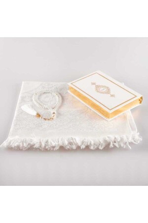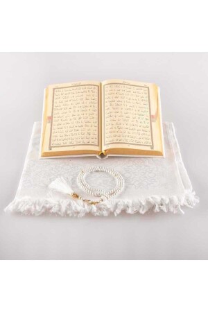 İslami Manevi Hediye Seti (Seccade- Tesbih- Kur'an-ı Kerim) TEKNİK BİLGİLER HATTAT AHMED HUSREV ALTINBAŞAK STOK KODU 30 1571 14 026 0100 KISA KODU KO0242 BARKOD 8682279677729 KAĞIT CİNSİ EN / BOY 27 X 20-5 AĞIRLIK 0-9 SET İÇERİĞİ 1- Altın yaldızlı- Termo Deri Kuran-ı Kerim (14x20 cm. ebatında- Diyanet Onaylı) 2- Tafta Seccade (110 x 65 cm.) 3- İnci Tesbih (99'lu - 6mm.) 4- Özel kurdeleli şeffaf asetat kutu DİKKAT! Not 1: Seccade ve tesbih renk tonlarında küçük farklar olabilir. Not 2: Kuran üzerine ücretsiz isim yazdırabilirsiniz. KİMLERE OLABİLİR? 1- Anneye manevi hediye 2- Eş için manevi hediye 3- Ablaya manevi hediye 4- Kız kardeşe manevi hediye 5- Bayana/kıza manevi hediye 6- Arkadaşa manevi hediye NE ZAMAN İÇİN OLABİLİR? 1- Mevlid hediyesi 2- Kına gecesi hediyesi 3- Namaza başlangıç hediyesi 4- Kuran'a geçme hediyesi 5- Doğum günü hediyesi 6- Sünnet- Vefat ve diğer tüm cemiyet ile özel günlerinizde hediye edebilirsiniz AÇIKLAMA Hediyeleşmek sünnettir ve İslam kültüründe önemli bir yeri vardır. Sevdiklerine manevi hediye almak isteyenler için en güzel manevi hediyeleri sitemizde bulabilirsiniz. Bu ürün- Kişiye Özel Manevi Hediye Kuran Seti ya da Seccadeli Tesbihli Kuran Hediye Seti isimleriyle de bilinmektedirler. Bu ürüne ücretsiz isim yazılabilmektedir. Bunun için sayfanın üst tarafında ürünün fiyat alanının hemen altında yer alan isim/söz ekle linkine tıklamanız gerekmektedir. Bu ürün Anneye manevi hediye- eş için dini hediye- ablaya İslami hediye- kız kardeşe manevi hediye- bayana/kıza manevi hediye- arkadaşa İslami hediye şeklinde aratılmaktadır. Ayrıca kına gecesinde ve mevlütlerde dağıtılan hediyelerdendir. Yine bayanlara namaza başladıklarında ya da Kur'an-ı Kerime geçtiklerinde hediye edilen manevi hediyelerdendir. Bunların dışında doğum gününde anneye- bayana- ablaya- kıza- arkadaşa manevi hediye arayanların da tercihidir. Doğum günü- kına gecesi- mevlid- namaza başlangıç- Kur'an-ı Kerime geçme hediyesi gibi daha birçok özel günde alınabilecek manevi hediyedir.