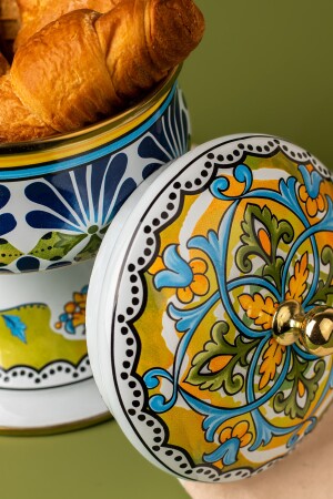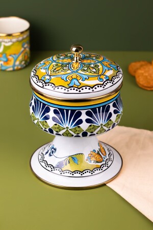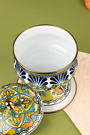 EMAYlab SELGE 14 x 13 cm Dekoratif Emaye Kapaklı Şekerlik, çikolata sunumu, çerezlikÜrün Ölçüleri:Yükseklik: 14 cm - Çap: 13 cmEmaye sağlıklı ve pürüzsüz bir metaryeldir, kolay yıkanır.Desenleri özel ipek baskıyla üretilmiş olup uzun akmaz ve çıkmaz.Ürünlerimiz el işçiliği ile üretilmektedir.Yüzeyinde el üretiminin doğasından ortaya çıkan farklılıklar nedeniyle her ürün benzersizdir ve birbirleri arasında hafif farklar olabilir.Tüm ürünlerimiz makinede yıkamaya uygundur fakat daha uzun kullanım için elde yıkayıp, el bezi ile kurulamanızı öneririz.Her zaman tahta veya silikon kaşıkla kullanmalı, çizilmeyecek şekilde temizlemelisiniz.