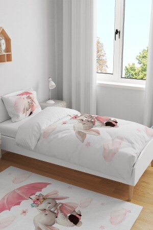 Şemsiyeli Tavşanlar Desenli Tek Kişilik Bebek Çocuk Nevresim Takımı evnev00153