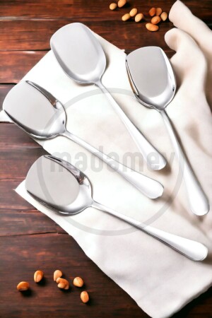 Set mit 4 luxuriösen Servierlöffeln, großem Edelstahllöffel, Salat, Kuchen, Speisen, Küchenlöffel