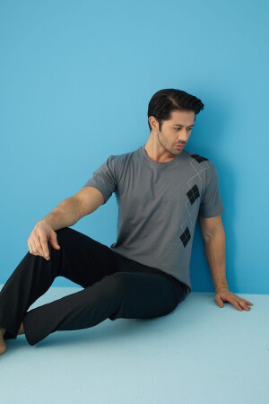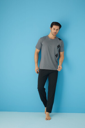 Langärmliges Pyjama-Set aus schwarzer Baumwolle mit Paspelierung