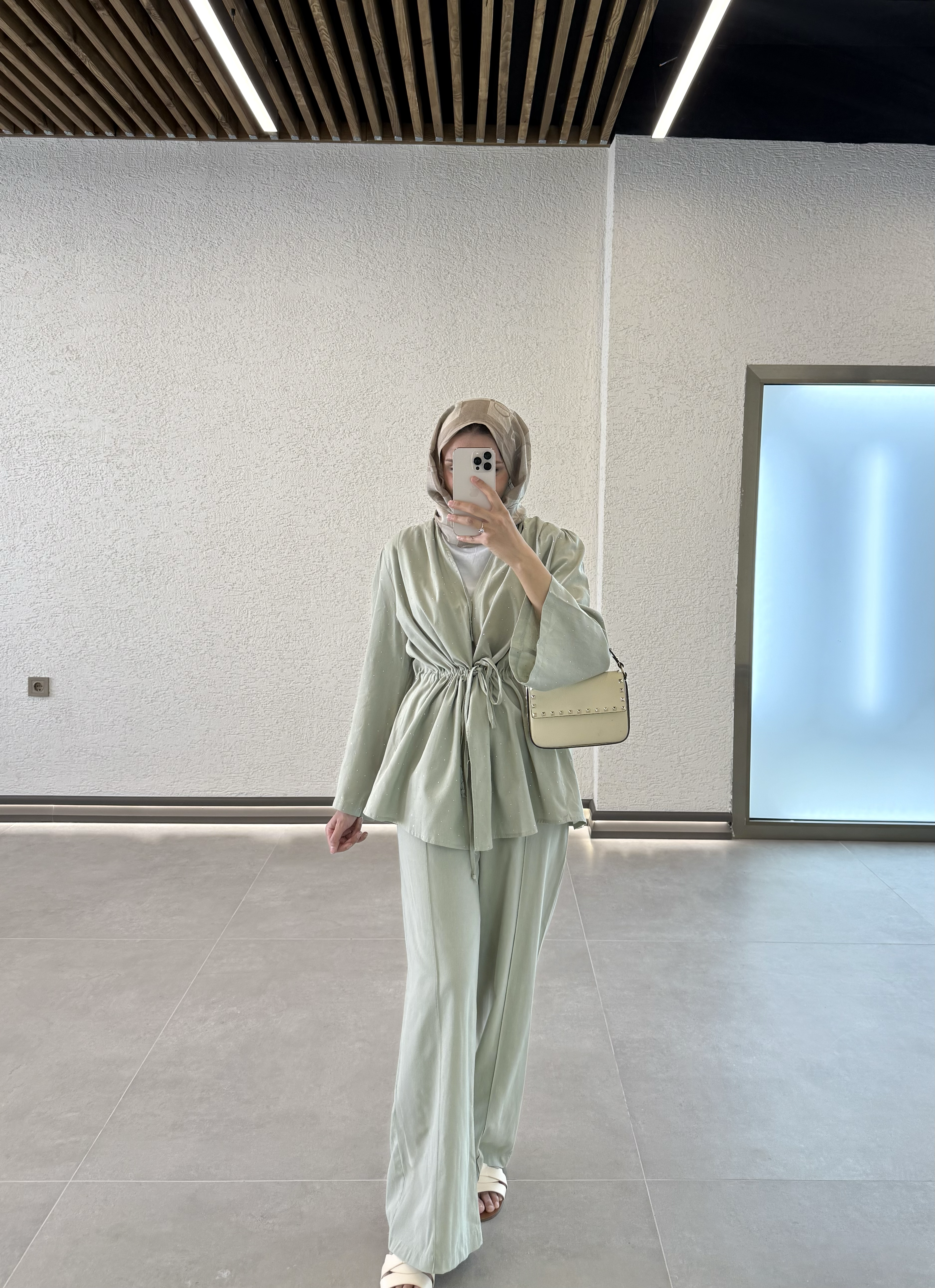 İnce Keten kumaş,a kalite kumaşpantolon çimalı,yüksek bel ortalama boy 107cmüst boy ortalama 80cmbelindeki büzgüler sıkılarak veya düz bir şekilde kullanılabilir 1/2 bedenli 1 beden 36-38 , 2 beden 40-42 uyumlukendi bedeninizi tercih edebilirsiniz manken 170cm 54kg