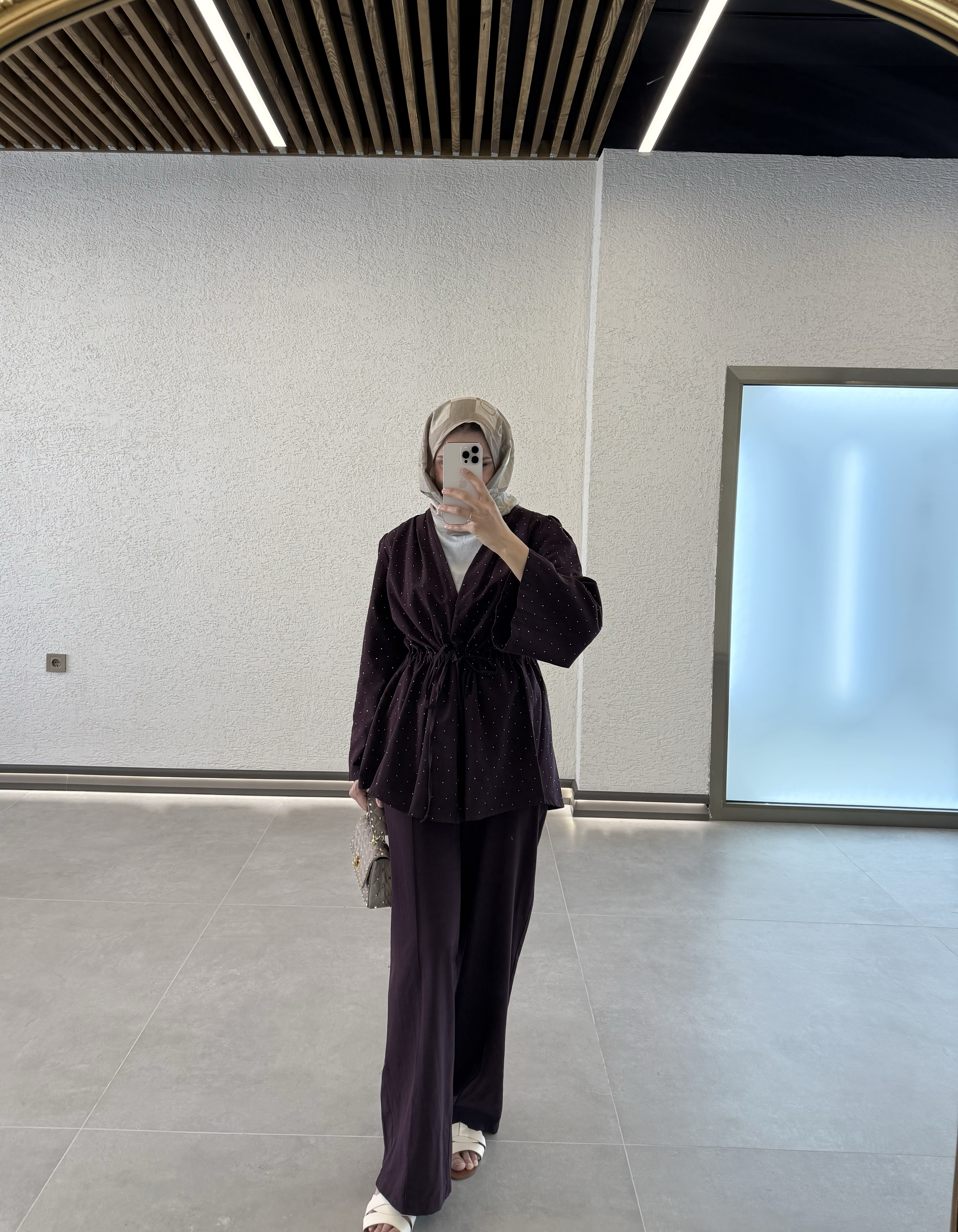 Taşlı İnce Keten Takım - mürdüm