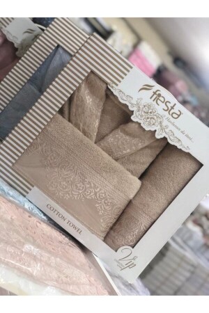 Hayal 12 Parça Kutulu Jakarlı Bornoz Takımı Bornoz Havlu & Havlu Seti Banyo Çeyiz Seti