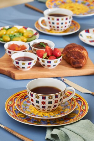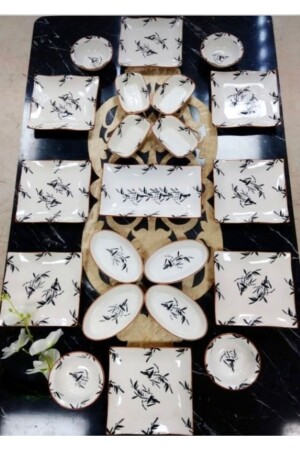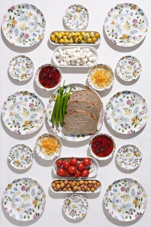 نمط MNZ-Magnolia خيوط فاخر 21 قطعة مستديرة الفطور الرقمي مجموعة 6 أشخاص - مجموعة الفطور