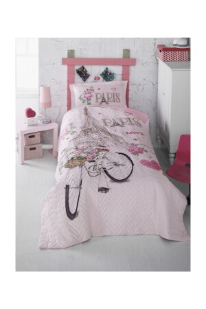 MNZ-Genç Hilkat Dusty Rose 4 قطعة غطاء واحد مع صفائح مرنة (100x200 سم) cndn-hilkat-tk
