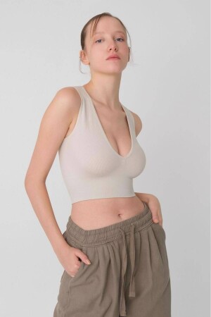Nahtloses Crop-Bustier mit V-Ausschnitt und dicken Trägern A0131