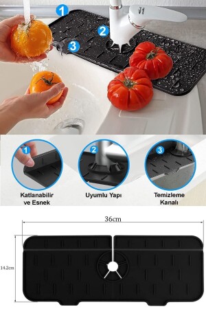 Wasserhahn-Siphonmatte – Schutzmatte für Wasserhahn und Waschbecken für Küche und Bad – Wasserhahn-Wasserfalle. Der Wasserhahn-Wasserfalle besteht aus flexiblem Material. Weich, wiederverwendbar und langlebig. Es verfügt über eine hervorragende Drainage- und Fleckenbeständigkeit. Das Wasserhahn-Pad verfügt über ein spezielles Design, das problemlos auf fast allen Wasserhahn-Sockeln angebracht werden kann. Ideal, um Arbeitsplatten – insbesondere solche aus Holz – sauber und trocken zu halten. Es ist mit einem Abfluss ausgestattet, der einen besseren Schutz bietet und einen großen Bereich abdeckt, um zu verhindern, dass Wasser auf Ihren Wasserhahn und Ihre Arbeitsplatte spritzt. Der Spritzschutz für das Waschbecken ist nicht nur eine Abtropfunterlage für den Wasserhahn, sondern dient auch zur Aufbewahrung Ihrer Zahnbürste, Ihres Glases, Ihrer Handseife und Ihres Spülmittels. Zusätzlich kann eine Klopfmatte zum Trocknen von Gegenständen wie Schwämmen, Gläsern und Geschirr verwendet werden. Hauptmerkmale: Zweckmäßige Funktionalität: Entworfen mit Ablauf – sammelt Wasser und tropft es in die Spüle. Dadurch bleibt die Rückseite Ihres Wasserhahns immer trocken und sauber, sodass Sie weniger Zeit mit der Reinigung verbringen müssen. Design: Entwickelt, um den Rückfluss des Wassers in die Spüle zu ermöglichen. Einfach zu bedienen: Es ist so konzipiert, dass es einfach um den Wasserhahn herum platziert werden kann. Packungsinhalt: 1 x Hahnmatte. Maße: 37 cm ~ 13–7 cm ~ Gewicht 100 Gr.