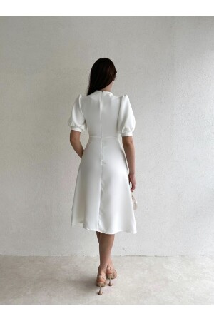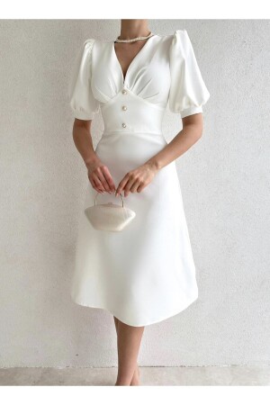 Weißes Midikleid mit halblangen Ärmeln und Perlenknöpfen