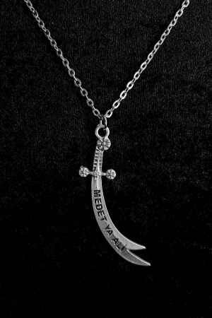 Zülfikar Hz . Ali'nin Kılıcı Medet Ya Ali Antik Gümüş Kaplama (düz 60 Cm Zincir) Erkek Kadın Kolye